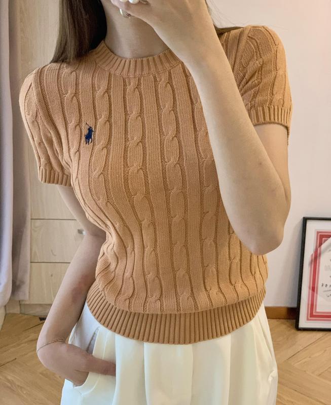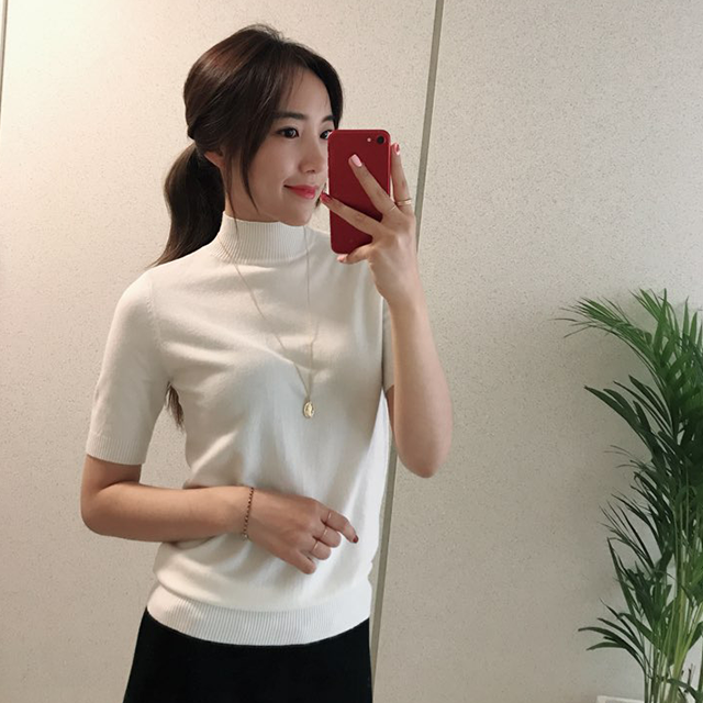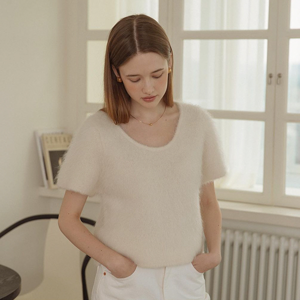 캐시미어 혼방소재의 반팔 폴라 니트예요