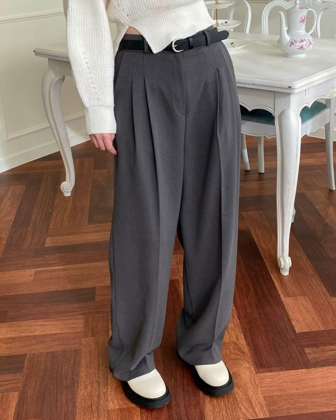 실루엣을 더욱 날씬하게 보이게 하는 따뜻한 핀턱 와이드 팬츠 입니다🤗
