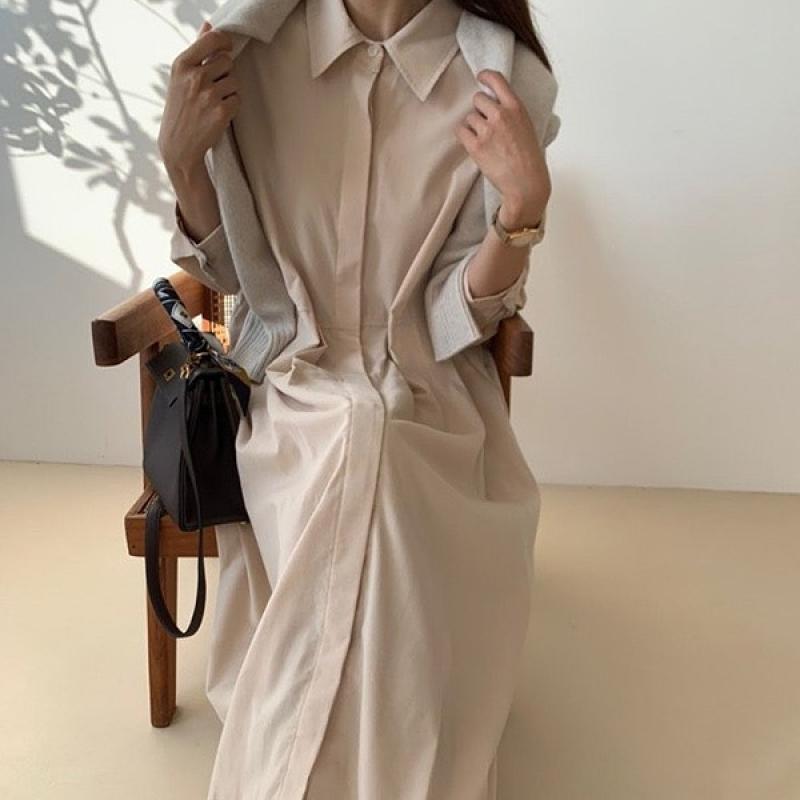 ✔️피치 주름 셔츠 원피스 / 2color