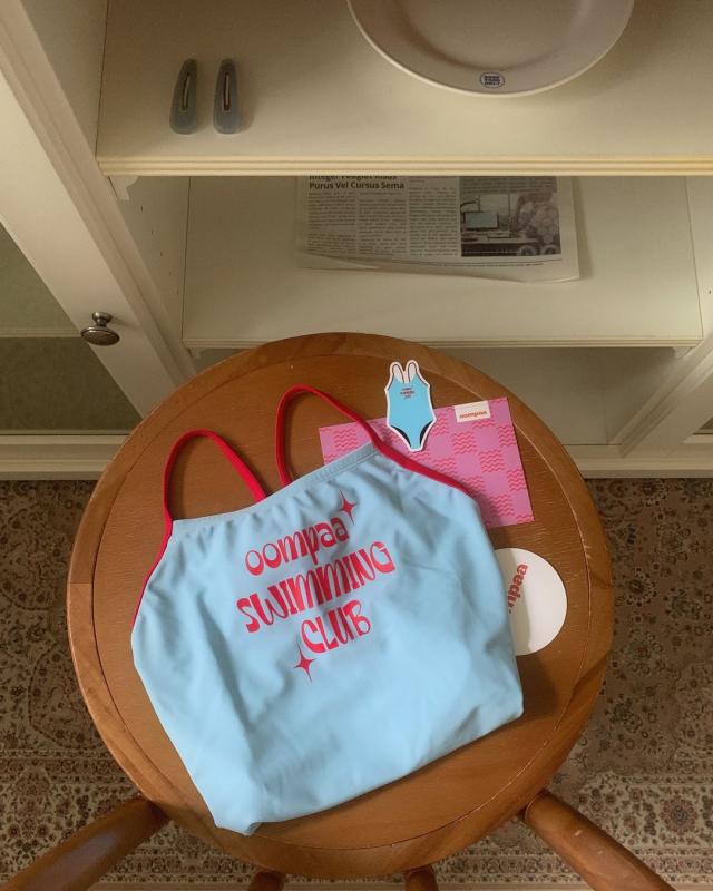 하늘색에 빨강 어깨 끈 배색이 너무 사랑스러워요. 어반웨이브 베리러브 수모랑 매치하니까 귀여움이 두-배ㅎㅎ 이렇게 코디 추천합니다🪽