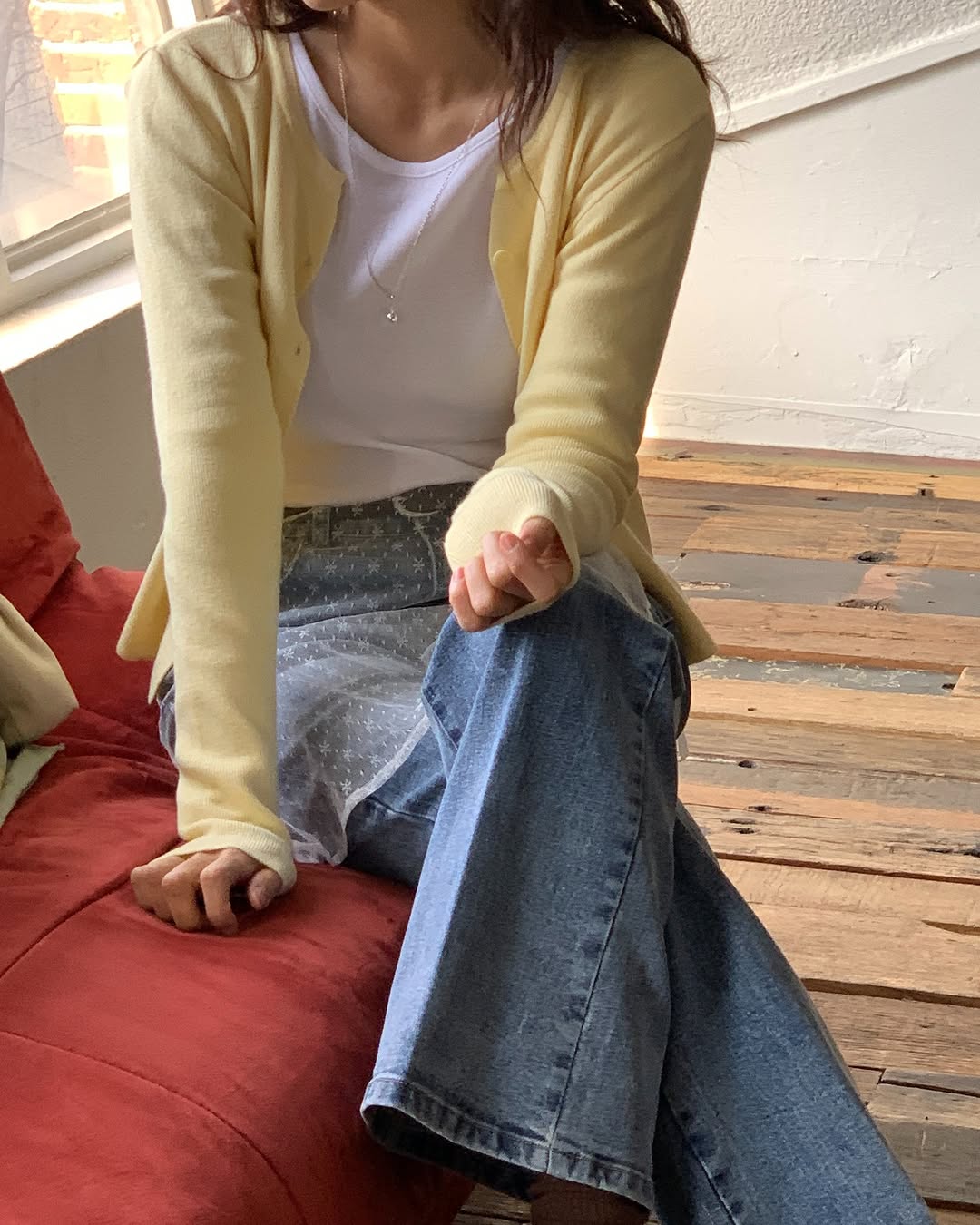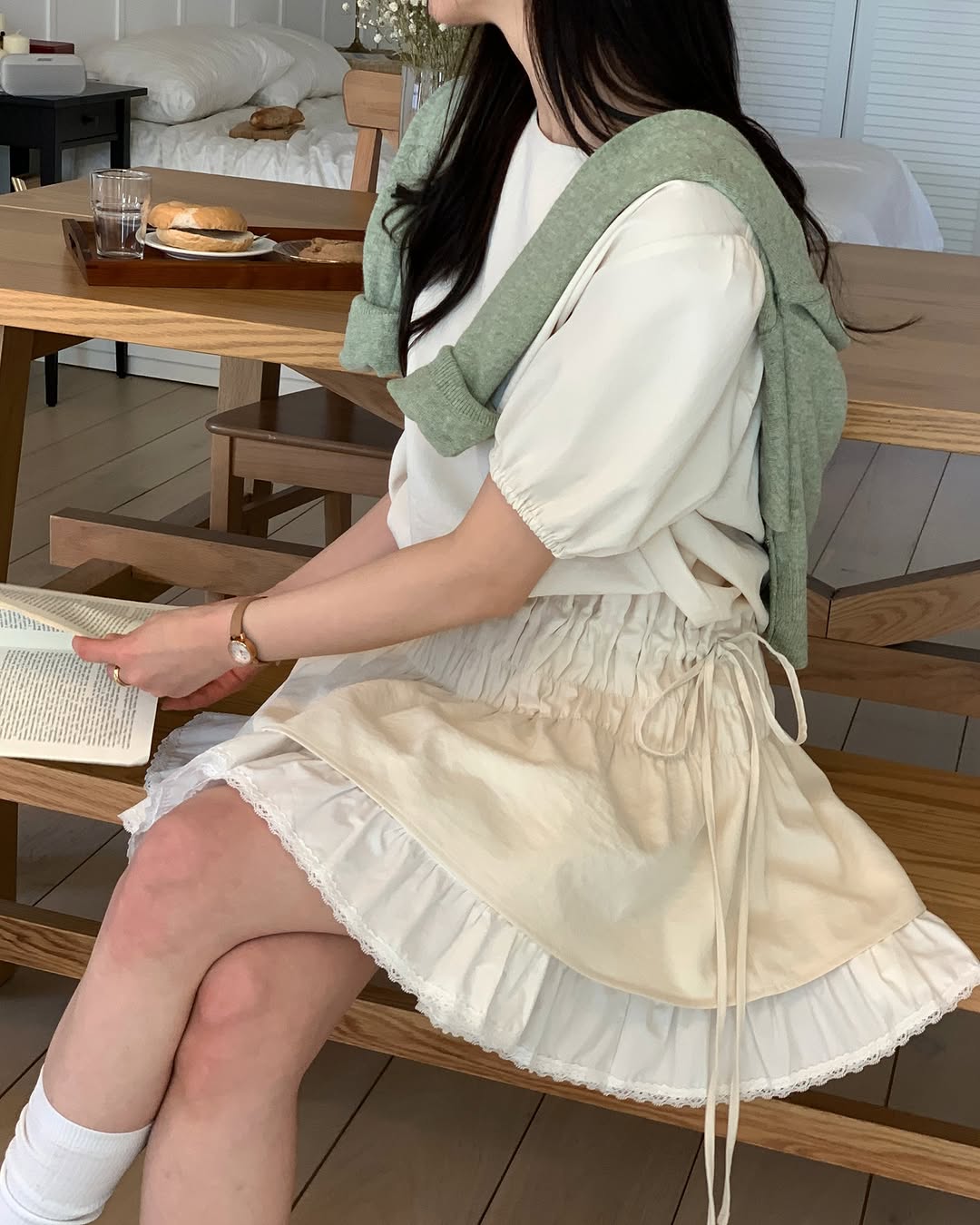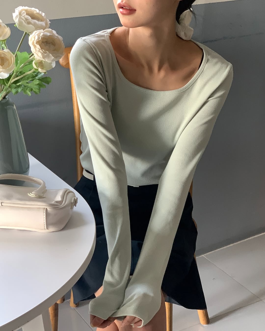 부드러운 터치감에 몸에 착 감기는 '밀키스 스퀘어 골지티'는 -3kg 핏으로 여리여리함을 더해주고,