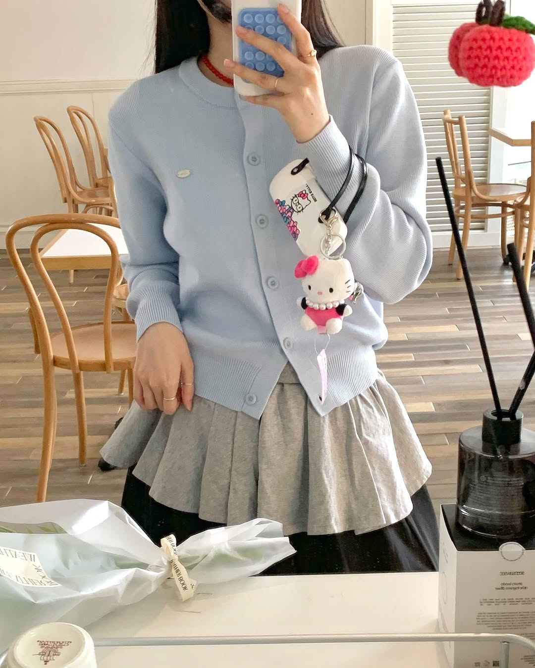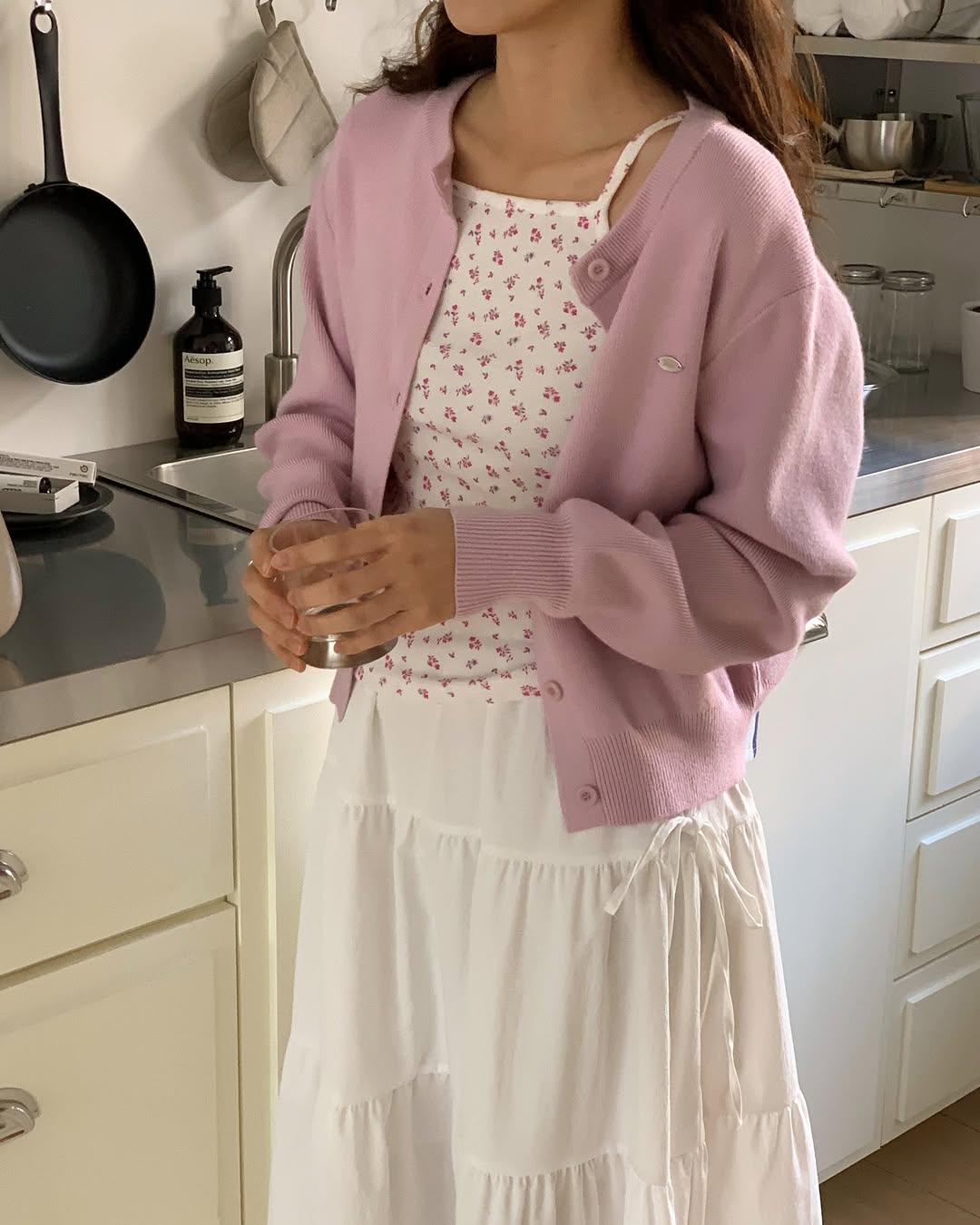 '마렌 라운드 가디건'은 심플한데 브로치 디테일이 고급스러워서 자꾸 손이 가더라고요.